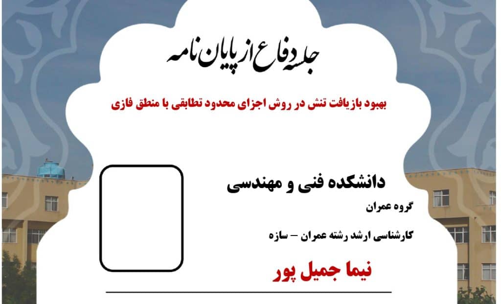 جلسه دفاع از پایاننامه آقای سعید خادمیفرد سهشنبه سوم بهمن ماه 1402 ساعت 14:30 در دانشکده فنی و مهندسی برگزار میگردد.